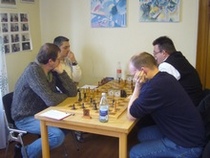 Am Ende der dritten Runde hatte sich Bernhard jedoch mit zwei Siegen und insgesamt 2,5 Punkten auf den 3. Tabellenplatz vorgearbeitet. Der Ötigheimer Joachim Kühn (ebenfalls 2,5 Punkte) und Klaus Knopf vom SC Weitenung (3,0 Punkte) waren die Spitzenreiter. Knopf verlor jedoch in der 4. Runde gegen Ast, und Kühn unterlag gegen Dr. Patrick Bruns vom OSC Baden-Baden. Somit ging Ast als neuer Tabellenführer in die Schlussrunde. Auch hier konnte sich der erfahrene Verbandsligaspieler gegen den jüngeren Kyamuran Mestan vom Veranstalter Ottenhöfen durchsetzen, und sich dadurch mit 4,5 Punkten den Titel sichern. Bernhard Ast, ein treuer Teilnehmer dieses Turniers, war nun bereits zum 2. Mal nach 2003 erfolgreich. Herzlichen Glückwunsch!