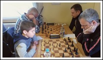 Positiv aus unserer Sicht war am Samstag in der 2. Runde der Gewinn von Kyamuran Mestan, unserem aussichtsreichsten Teilnehmer, gegen den deutlich stärker einzuschätzenden Hans-Erich Gubela (SF Sasbach). Kyamuran siegte auch in Runde 3 gegen Roland Laubis, und lag dann am Ende des Tages mitten im Kreis der Favoriten aussichtsreich auf dem 3. Platz. Vorne standen ? ebenfalls ohne Verlustpunkt - genau gleichauf: der DWZ-Beste Thilo Ehmann (SF Sasbach), sowie Seriensieger Frank Pluschke.