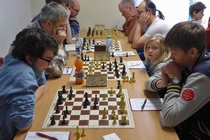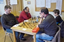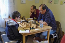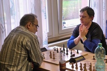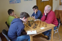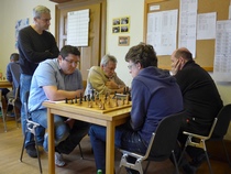 Dabei sah es nach der 3. Runde am Samstagabend so aus, als hätte Thilo, der Titelverteidiger vom letzten Jahr die etwas schlechteren Karten, denn er hatte schon ein Remis gegen den starken Senior Hermann Schrems vom SK Weinheim abgegeben. Die beiden anderen aus dem Führungstrio waren noch ohne Verlustpunkt. In Runde 4 konnte Thilo aber gegen Ralf Gantner, Landesliga-Spieler aus Kuppenheim gewinnen. Der junge Andrei-Ioan musste gegen Maximilian antreten, und unterlag. Damit war er aus dem Titelrennen heraus. In der Schlussrunde spielten dann die Vereinskameraden Thilo und Maximilian gegeneinander um den Turniersieg. Hier hätte Maximilian, dem DWZ-stärksten, ein Remis gereicht, denn er war ja immer noch Verlustpunkt-frei. Er unterlag jedoch in dieser entscheiden Partie. Damit hatte Thilo das Turnier - wie schon im vergangenen Jahr - für sich entscheiden. Er gewann mit 4,5 Punkten aus 5 Partien. Maximilian wurde mit 4,0 Zählern Zweiter. Andrei-Ioan gewann ebenfalls seine letzte Partie gegen Momin Ahmad aus Ottenau. Er hatte nun auch 4,0 Punkte auf dem Konto, und kam damit, wegen der etwas schlechteren Buchholz-Wertung, auf den 3. Platz - gefolgt von Daniel Müller (SK Oberkirch) und Ralf Gantner (beide je 3,5 Punkte). Die beiden Teilnehmer von unserem Verein landeten im Mittelfeld: Eduard Braun wurde 16. mit 2,5 Punkten. Horst Lepold kam mit 2,0 Punkten auf Rang 19. Horst hatte dabei eine Doppelbelastung zu tragen, denn er war nicht nur Spieler, sondern auch Turnierleiter und Schiedsrichter dieses Turniers.