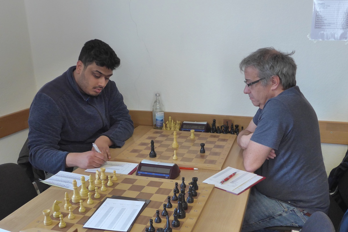 Marcel spielte in Runde 4 am Sonntag Remis, Thomas hingegen gewann auch hier gegen Kyamuran Mestan aus unserem Verein, und war somit erster Anwärter auf den Turniersieg. In der 5. Runde bekam er es dann mit Momin Ahmad (SK Ottenau) zu tun. Dieser wies bis dahin einen Punkt weniger auf, hätte aber mit einem Sieg dank der besseren Buchholz-Wertung noch an dem Favoriten aus Hornberg vorbeiziehen, und das Turnier gewinnen können.