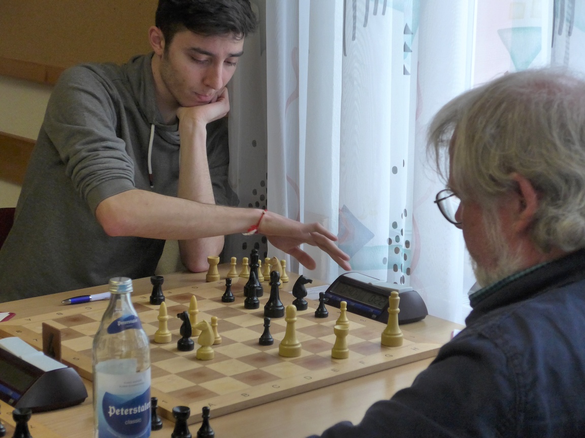 Mit dabei war auch Alexander Teichmann, der Titelverteidiger vom letzten Jahr. Dieses mal lief es für den Bereichsliga-Spieler vom SC Neumühl jedoch nicht so gut: schon in Runde 1 am Donnerstag-Abend musste er sich mit einem Remis begnügen. Die 2. Runde verlor er sogar, und war damit praktisch schon raus aus dem Titelrennen. Dort hatten nun Andere die Nase vorn: