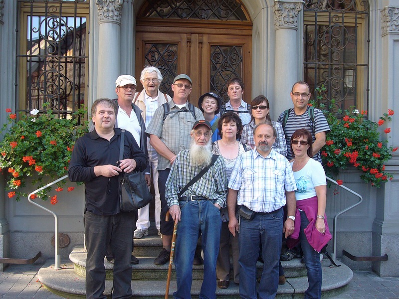 die Ausflugsteilnehmer versammelt vor dem Rathausportal