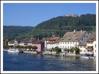 Mit einem Passagierschiff der schweizerischen "Untersee und Rhein" -Schifffahrtsgesellschaft fuhren wir bei strahlendem Sonnenschein den Fluss aufwärts bis ins 20 km entfernte Stein am Rhein. Auch dort konnten wir in den mittelalterlichen Gassen viele prächtig verzierte und bemalte Häuserfassaden entdecken.