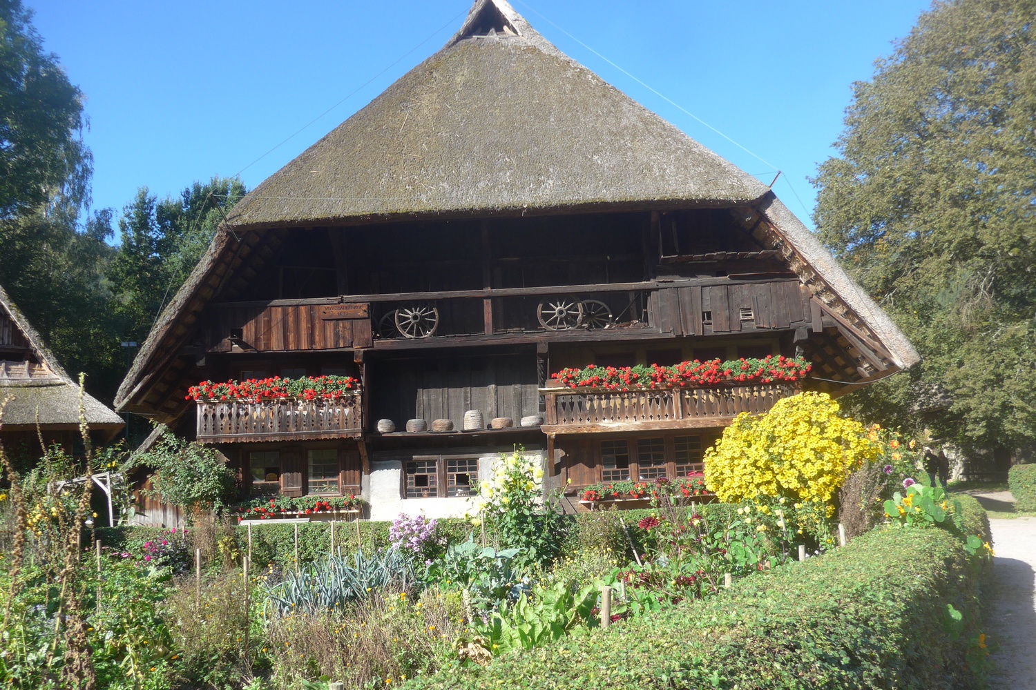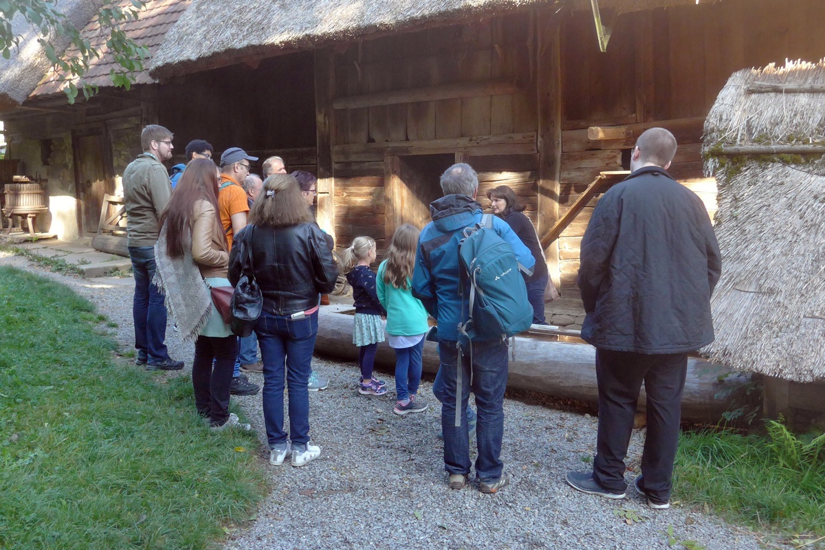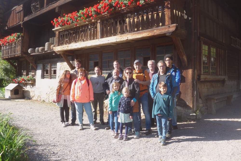 Mit insgesamt 15 Personen fuhren wir am Morgen per Bahn zum "Freilichtmuseum Vogtsbauernhöfe" nach Gutach im Kinzigtal. Dort konnten wir hautnah nachvollziehen, wie die Schwarzwälder Bauern in den früheren Jahrhunderten lebten und arbeiteten, und wie ihre Häuser gebaut waren. Während einer gebuchten Führung wurde uns dies alles eindrucksvoll erleutert. Wir lernten den 400 Jahre alten Vogtsbauernhof (um den herum das ganze Freilichtmuseum entstanden war) von innen kennen, und erfuhren viele interessane Details über das Leben von damals. Zudem wurde uns die Funktionsweise einer wasserbetriebenen Hausmahlmühle ausführlich erklärt, und wir konnten die Mühle auch in Aktion erleben. Nach der Führung blieb noch Zeit, um die anderen Gebäude des Museums, die Bauernhöfe, Sägemühlen, Werkstätten usw. auf eigene Faust zu erkunden. Es gab auch Sonderausstellungen und Handwerksvorführungen zu sehen. Die Gastronomie des Museums bot dann Gelegenheit zur Mittagspasue.