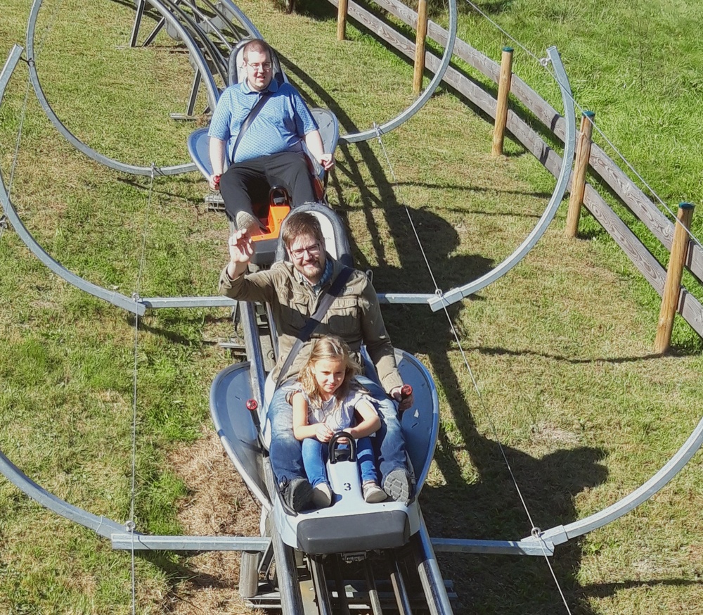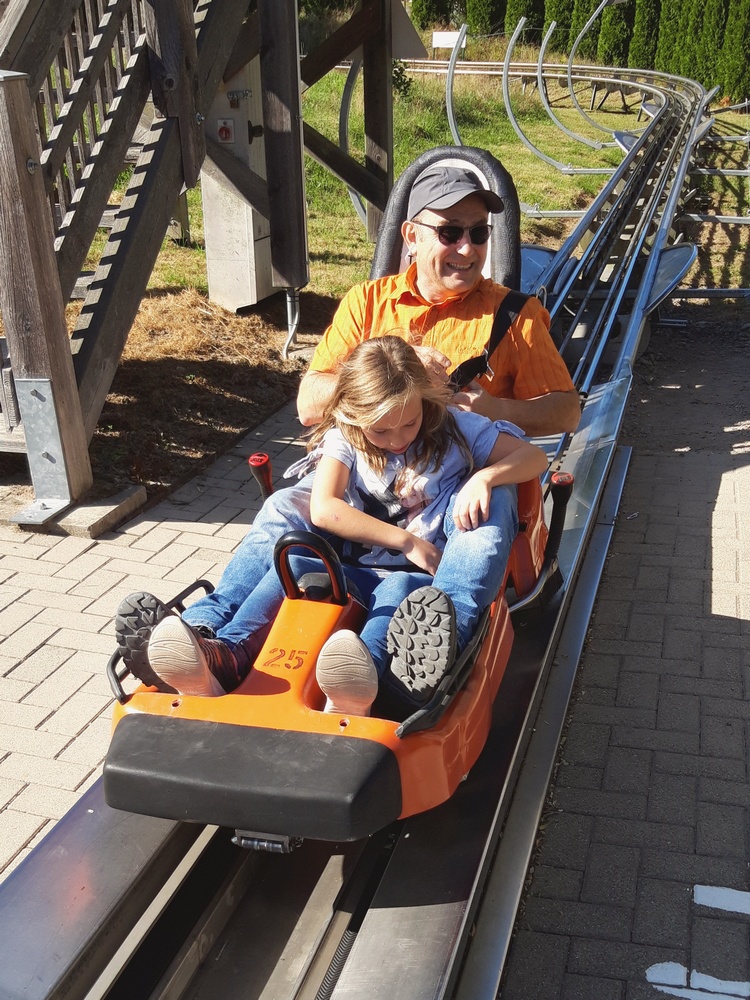 Danach war der Besuch der Gutacher Sommerrodelbahn vorgesehen. Sie liegt ganz in der Nähe des Museums, und war für uns gut zu Fuß zu erreichen. „Wer schafft die 1150 Meter lange rasante Abfahrt am schnellsten?“ Nach jeder Fahrt konnte man dies an einer Anzeigetafel ablesen.