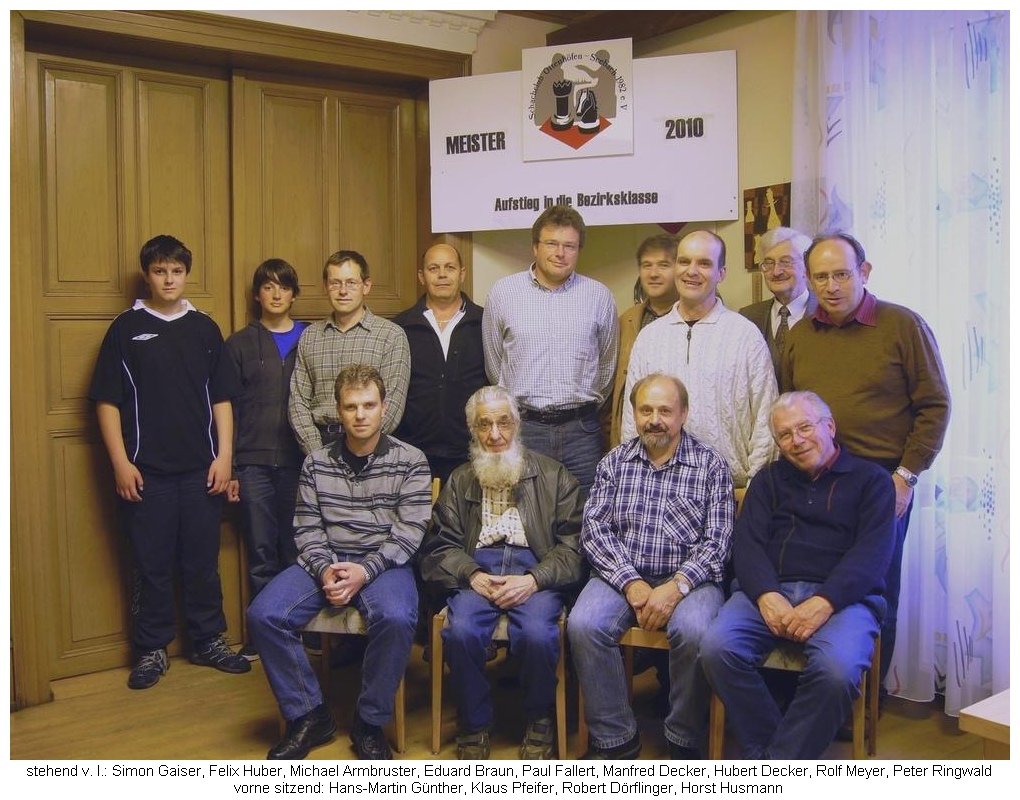 Hans-Martin Günther, Klaus Pfeifer und Robert Dörflinger bekamen vom Vorsitzenden eine Auszeichnung für ihre langjährige Tätigkeit im Vorstand. Ein positiver Aspekt bei der Versammlung war natürlich die Meisterschaft, verbunden mit dem Aufstieg der ersten Mannschaft. Auch die Zweite beendete die Saison auf einem Aufstiegsplatz.