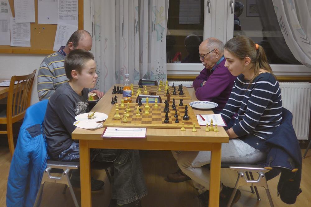 Am ehesten hätte noch Teamchef Horst eine Chance auf etwas Zählbares gehabt. Er hat sich in seiner Partie gegen Bernd Walther lange Zeit gut gefühlt, dann aber eine falsche Abwicklung gewählt. Eduard hat gegen den Verbandsligisten Maximilian Ruff leider einen Turm eingestellt, und auch Kemi und sein Sohn Kadir waren überfordert.