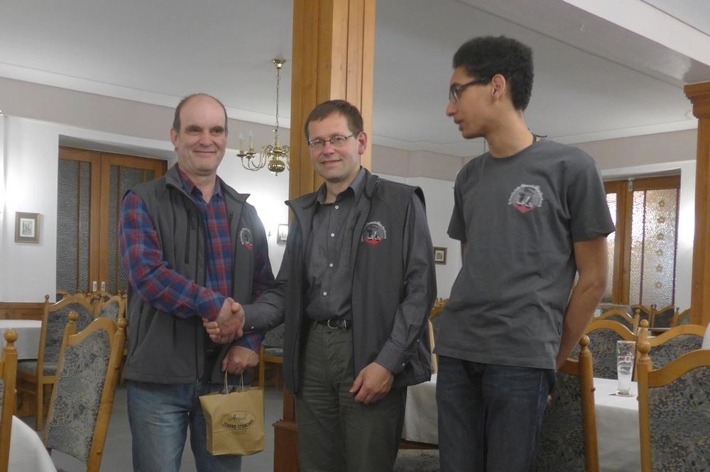 Leider konnte Arnd Braun an diesem Abend nicht anwesend sein, ebenfalls ein sehr engagierter und tatkräftiger Schachfreund, der unseren Verein während seiner aktiven Zugehörigkeit nachhaltig geprägt hat, und auch jetzt noch regelmäßig finanziell unterstützt. Er sollte für seine 25jährige Mitgliedschaft mit der Vereins-Ehrennadel ausgezeichnet werden - dies holen wir noch nach.