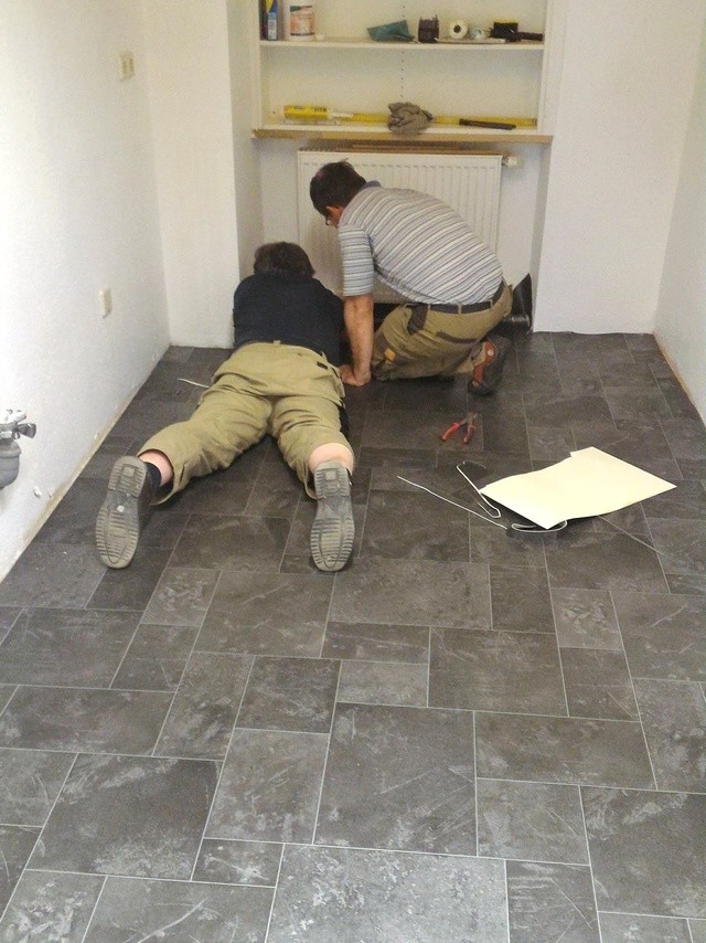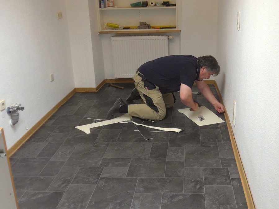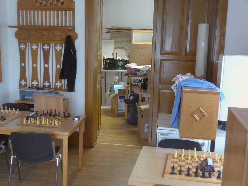 Bei den Umbau-Maßnahmen in unserem Vereinsheim hat sich inzwischen wieder etwas getan: Der kleine Nebenraum, der Küche, Lager, und Turnierleiter-Arbeitsplatz beherbergen soll, nimmt langsam Gestalt an. Die Malerarbeiten sind abgeschlossen, einen neuen PVC-Belag haben wir auch schon verlegt. Anschließend ging´s ans Einräumen der neuen (gebrauchten) Küchenmöbel - gemäß unserem ausgeklügelten Plan. Auch die Oberschränke hängen schon. Das Regal für den Getränke-Vorrat und der Schrank mit dem Schachmaterial haben ebenfalls ihren Platz gefunden.